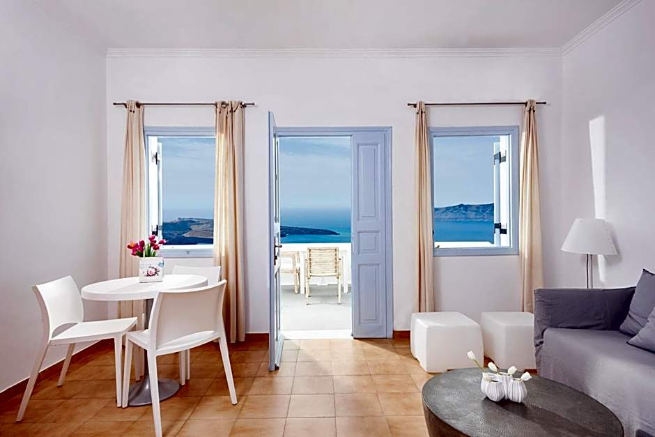 This family suite offers direct sea and caldera views. It can accommodate up to 4 guests